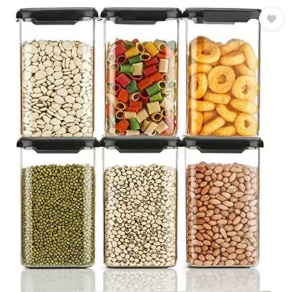 ShopGlobal Unbreakable Air Tight Kitchen Storage Containers Set of 6 - 1100 Plastic Grocery Container (Black)